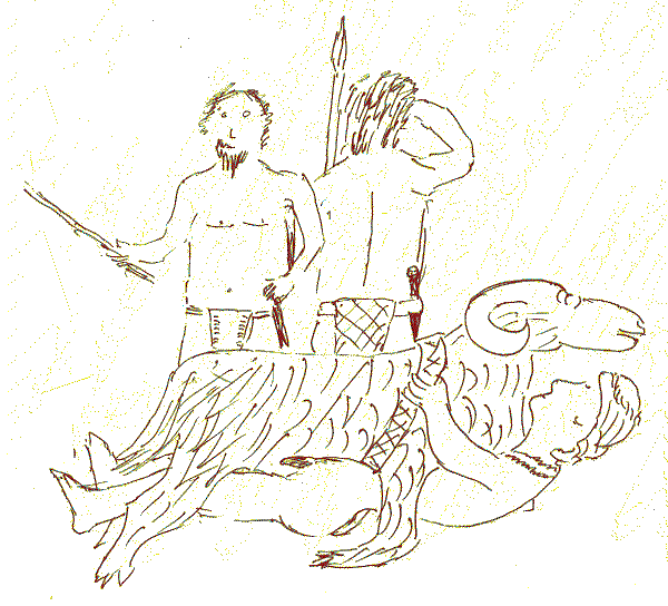 Erdiosh, as all the village knew, liked to suckle on Tektu's penis. Boys do that, of course, but people will say that the boy whose penis is sucked, is usually the brave one. "As penis, so dagger," is the old proverb. No one really thought Tektu was a coward, but Erdiosh thought he had to prove himself to the village, and so he took on the king's warrior, fighting with shields and headless spears. It was horrible. Erdiosh was soon curled up on the ground, shouting "Stop. I'm a coward, a coward" His shoulder was mangled, a rib broken, and there was a bad gash in his groin, bruises all over, and a cut from his own shield below his ear. And he had bitten his tongue. The King's warrior had not been touched. Before walking away, the warrior kicked Erdiosh's bottom.