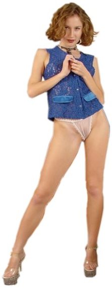 are semi-sheer, allowing her vulva to be clearly seen. This girl's