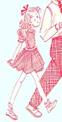 Susie skipped along with her little friend Peggy. Her blue eyes sparkled. Her blonde pigtails bobbed, and set the ends of her blue satin hair ribbons flying. Her little yellow dress fluttered. The boys behind could see her underpants. They were pink and shiny with little red hearts.