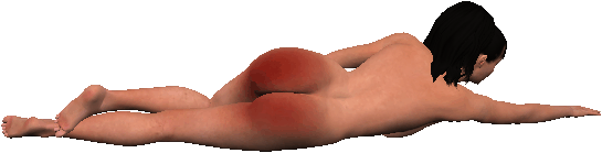 her bottom a fierce shade of red punctuated with purplish welts. Looking