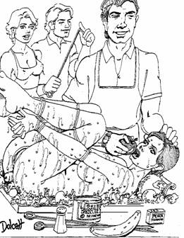 My vision was dim, but, yes, I could see my former companions turning, revolving about their spits, and Alec – yes, I saw Alec too - his cock hard and angry, coating their naked bodies with sauce.