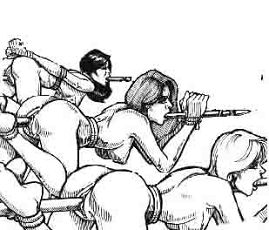 My jutting nipples would go pop soon, they were so hard. My whole body was shuddering forwards towards an almighty climax.  I tried to answer the spit's thrusts, pushing back, like in a real fuck, imagining the iron cocks squirting their hot jism, imagining how much it would be.