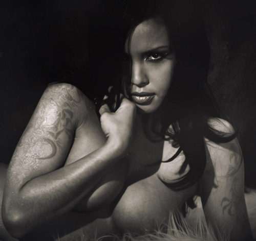 The skirt was tight and long, made of supple black leather, and slit along the left side. The blouse was short and red, pulled tightly around my breasts to expose my taut stomach and waist. It was made of leather as well, soft and buttery beneath my fingers and it smelled of the pigments used to color it. A lacquer, I thought, Dragon's Blood perhaps. It fit me closely, pushing my breasts together and upward enticingly, the back laced upward like a corset, and with the skirt I was transformed into the very model of femme fatale.