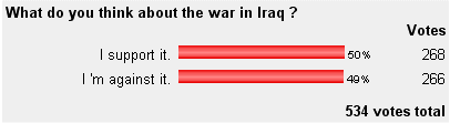 Resultados del sondeo : "¿ Qué opinas tú al respeto del conflito en Irak ?