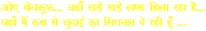 bewakoof, vahA.n khaDe-khaDe lunD hilA rahA hai… yahA.n mai.n kaba se chuddai