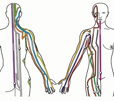 After the break we went over the Lung Meridian from last week and started on the Large Intestine Meridian. I turned Kai's arm slightly inward and palmed more gently down along the top of the bone with the flat of my thumb and heel of my palm to his elbow. I gripped his forearm and leaned a little onto the knuckle of my index finger as I worked down to his wrist. In shiatsu you use body weight to apply pressure straight down, because that's how gravity works. You need a wide stance so you can shift your weight onto and off of your hands and remain stable. You need to breath well so you can stay relaxed and sensitive to the conditions and changes in your partner's body. The Large Intestine Meridian starts near the end of the Lung Meridian at the edge of the index finger nail, point LI 1, and goes in the other direction. I asked the instructor why we started at the shoulder and didn't understand her answer. I traced up the finger to the center of the muscle between it and the thumb. This is point LI 4, Meeting of the Valleys, which relieves pain in the head, jaw and teeth. Point LI 5 is on the side of the wrist between the two thumb tendons. I continued up his forearm along the bone to the outside of the elbow crease. This is point LI 11, Crooked Pond, and it cools fevers. I thought this might be useful and tried to remember it. The meridian goes outward slightly and curves back in to run along the bone to the muscle below the point of the shoulder, point LI 15. It crosses the collarbone, goes up the muscle on the side of the neck, over the jaw, near the corner of the mouth, above the upper lip, and ends next to the opposite nostril. This is point LI 20, Welcome Fragrance, used to clear the sinuses. I went over to Kia's other arm and did the whole thing again, then he did me. He seemed to be able to find the various points better than I could. We met Kai near the beach end of the path from the parking lot and headed over the lava outcrop together. It was a steep enough climb that people didn't wander this way by mistake. From the top you might not notice at first that people weren't wearing suits if you didn't already know. It just looked more crowded than the larger part of the beach. We found a spot partway along, away from the entrance path and not next to the gay section. As we stood there after putting down our stuff and carefully arranging our beach towels, my friend who had suggested this took off her top, and my other friend followed. They didn't have too much tan but still had white triangles over part of their breasts with red or pink spots for nipples. Maybe they thought I wouldn't take mine off because my new almost boyfriend was there, but they were wrong. My skin was somewhat darker but still had an obvious difference in tone, which I hoped to partly rectify. My nipples were brown like Kai's. After a couple moments he managed to look me in the eye, and then at least mostly in the neck or shoulder. There was no halfway for him, so he just stripped off his trunks. The three of us stared at him for a couple moments. He was Hawaiian with darker skin and the contrast was not as noticeable. I thought he looked nice. He didn't seem to mind our stares and asked if I wanted to swim. I said yes and stripped off mine. I told myself if I didn't get them wet I wouldn't have to wait for them to dry. And yes, I am something of an exhibitionist. People like to show off if given the right opportunity. That's what all those women's costume stores in the malls are about. This was just less expensive.