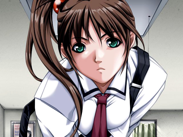She wore her school uniform, as one would expect. Her white blouse had probably been starched, the creases looked so perfect. Imari's red skirt was precisely hemmed to mid-thigh, pleated with just enough flounce to show off the white panties underneath if she wasn't careful. She wore dark cover-alls with brass buttons, which didn't cover all that much. Dark nylon stockings and the same school tie every other student wore. It wasn't a bad uniform, in my opinion. Kind of sexy in a way, and fastidious Imari always looked nice in hers.