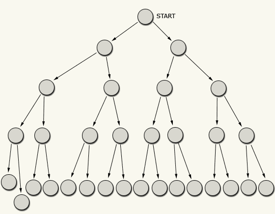 As you see, to create a story where the reader steps through five paragraphs, you will need to write a total of 31 paragraphs! And it would quickly grow larger!