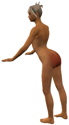 her bottom a fierce shade of red punctuated with purplish welts. Looking