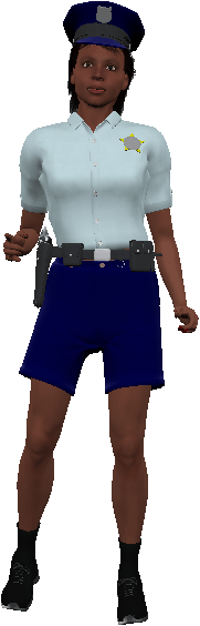 Eve was fully dressed in her uniform by the time Trish had finished cooking. Trish knelt, greeted her owner, and served her. While the policewoman cleaned her service revolver, Trish ate the remaining food and cleaned up the kitchen.