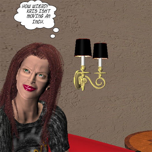 KARIE DOESN'T SEEM TO NOTICE THAT SHE TOO HAS REMAINED COMPLETELY MOTIONLESS.