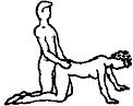 the man to kneel on the floor for thrusting. For heavyset men it can