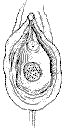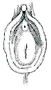 top to bottom can be clearly seen the clitoris, urethral opening, and vaginal