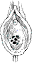 blood once menstruation begins. Illustration E is of a vagina in a post-partum