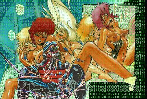 “It’s so subtle,” she says stretching like a cat in my arms, feeling the body I’ve coded, the desc I’ve put together. How did she hack it? What am I dealing with, here? Nixon, you moron, you’ve dragged someone in who can hack your files and pulled her into this private and personal space, and how the hell smart is that, and who the fuck cares, in the end, when her hand slips between my legs like that and her finger slips along my slippery slit like that, and oh, my. “So warm,” she’s saying. “And so wet. I can feel it, and I can,” and her other hand, slipping between her own legs (my legs, still), “I can’t tell the difference,” she says, “you’re as turned on as I am.”