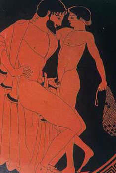 All of the ruckus over Jerry Sandusky would not have made sense to the Greeks. In Classical Greece it was accepted and even expected that a young boy would form a friendship with an older man. The older man would serve as a mentor and a level of love would naturally develop between the two. That love would be expressed quite naturally. In Greek pottery popular themes and images were used over and over. For example, here is one popular image used in two different pottery pieces, an older man with an erection fondling a boy called Man courting young boy. Courting, what a wonderful euphemism. Now remember, this is museum art so it is okay. We don't need to get squeamish over Art with a capital A.