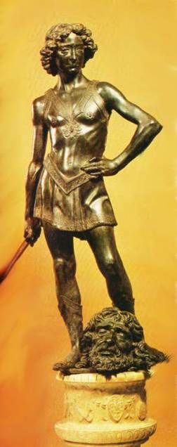 Speaking of feminine boys, the second most famous David, the one by Donatello, turns the founder of Israel into a little girl with a foppish feminine hat. The only thing masculine is the genitals that seem stuck on a girl's body with the pooching abdomen and pointy little nipples. 35 years or so later, Verocchio made another David obviously influenced by Donatello. Verocchio puts his girlsh David in a skirt and breastplate that seems to highlight his pubscent breasts and feminine abdomen. Again, all ages are admitted to the Bargello museum and you can find these in every book on the Italian art of the renaissance. No community standards were violated. Even the Christians aren't incensed that David has been turned into a girl. This art is okay.
