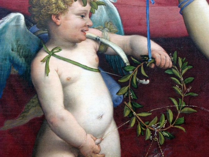 We don’t have to go very far in art history to find another famous pornog - oops, famous pervert, sorry, famous painter, Caravaggio. He is noted for the sensuous young boys he loved to paint, um, yes, we'll leave it at paint. The homoerotic and pedophilic qualities of this painting have always been apparent to all. The luscious soft skin and under developed male genitals give this boy a feminine quality that must have appealed to all the perverts. You can find this image all over the Internet and library books with no age restrictions, because it is Art. No where does this pedophilic voyeuristic homoerotic painting violate community standards. I mean, except here on our website where we would carefully hide it behind the codes.