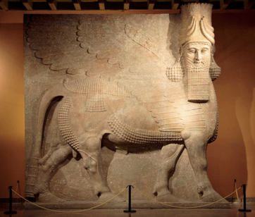Western printed letters are lines and curves, the capitals from Roman inscriptions and the minuscules from Charlemagne's scribes. Cuneiform is writing done on clay tablets with wedges and stokes. It is carved into stone for inscriptions. It was invented by the Sumerians and used by the Akkadians to represent their language. Other Semitic speaking people picked it up and adapted it, as did the Indo European speaking Hittites. The Assyrians developed it into an art form. The clay tablets are fragile and care must be taken when excavating them. They can be destroyed by an armored vehicle driving through an army base built on an ancient city mound, as the American's sometimes were. When cites were burned the clay was inadvertently baked and the tablets became nearly indestructible. Records on paper, such as those of the Greeks and Romans, must be recopied through the centuries or they are lost. Gilgamesh and other literature from Sumer and Akkad was recopied by scribes of early Babylon and Assyria, but from then on we have original sources, the actual letters and documents written by kings and administrators, not later copies of them. Orientalists tried for decades to decipher cuneiform, but no progress was made until a German high school teacher and amateur cryptologist made a start. He recognized an inscription as the name of a king and his father, and went through king lists until he found ones of the right length that matched up. It was several more years before anyone paid attention to his work. The Asian lion ranged from Palestine to India up until the middle ages. They were symbols of strength and courage since the lion and bull were the most powerful creatures or things known, as the steam engine was later. Lions were thought to be watchful and sleep with their eyes open. Inanna was shown standing on a lion or a pair of lions, and carved or mosaic lions often stood at the entrance to her temple. They are still seen at the entrance to libraries. A lamassu is an Assyrian protective deity depicted as a winged lion or bull, usually with a human head. Enormous reliefs of them stood at the entrance to cities, and ones inscribed on clay were buried beneath the thresholds of houses. Both of them are companions to God in the Christian Bible, and they are symbols for St Mark and St Luke. Egypt borrowed the idea for the guardian of the pyramids, the Sphinx. A guardian spirit is now represented as a winged human. The Greeks thought of the one who watched the Minoan Labyrinth as a demon, so the Minotaur became a bull with a human body. Reliefs from Nineveh now in the British Museum show the king hunting lions from a chariot. There were no lions on the plain at the time, so they had to be imported from the mountains. Only kings were allowed to hunt lions. Roman troops stationed in foreign lands got bored, so lions were used for entertainment. They would scoop up random members of the local population and watch lions kill and dismember them in the hundreds of amphitheaters they built for the purpose throughout their empire. Of course lions did not like to eat humans, so they had to be starved first. Herakles is most often depicted wearing a lion skin and carrying a club, although lions became extinct in Greece shortly after the classical period.